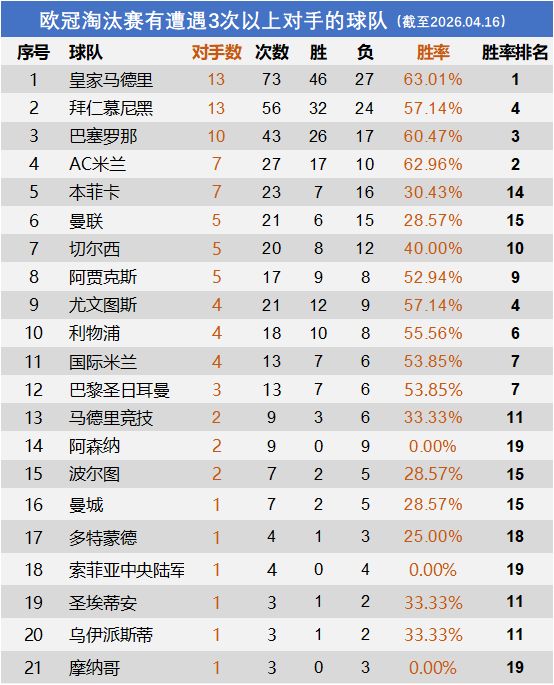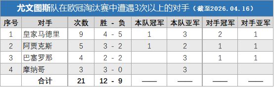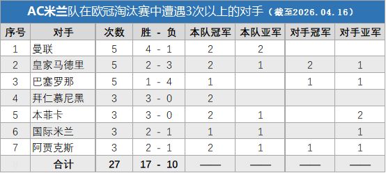 能在与榜单中这些球队多次交手而不落下风,这些数据完美诠释了一支四夺欧冠的球队的历史。